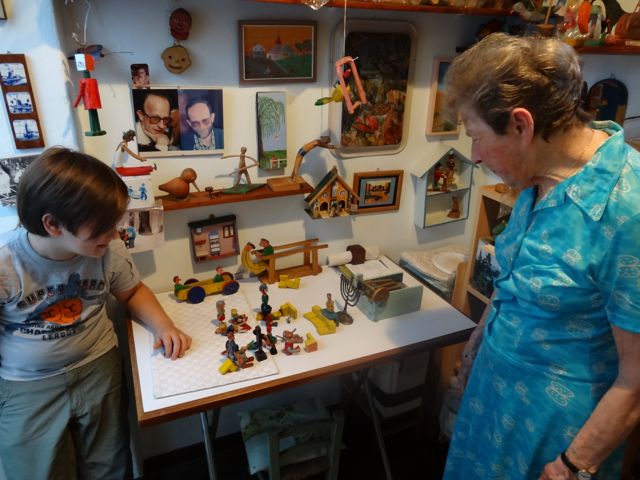 Inzwischen hatten wir einige Drehs, das erste Gespräch letzten Samstag mit Liesl, seit ihrer Einwanderung Alicia und dann irgenwann auch wieder Lissel. Sie ist 88, wach, mobil und sehr humorvoll. Und hat unendich viele Geschichten zu erzählen. Die Spielsachen, die ihr Mann aus Holz bastelte, sind unglaublich. Unser Assistent, der kleine Jannis hat sofort eine Hochzeit mit ihnen inszeniert. Auch Marion, ebenfalls 88 und topwach, mit der wir gestern drehten, quillt über vor Geschichten. Auch, was sie erlebte, als sie erst einmal auf konfusen Wegen nach Palestina kam – dort wurden die deutschen Juden richtiggehend geächtet, es bleibt einem im Hals stecken. Ihre Fahrt auf einem japanischen Schiff von Palestina nach Buenos Aires, die alleine wär schon ein Film wert.